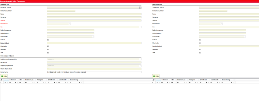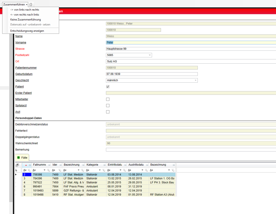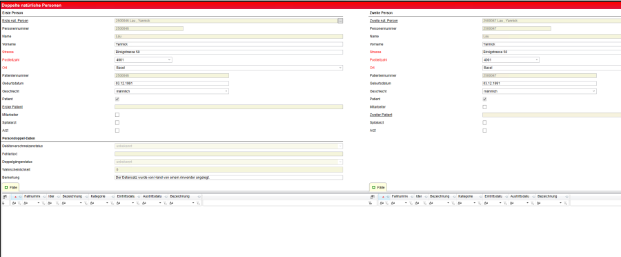 Auf Abbildung 3.7 sieht man die zwei ausgewählten Datensätze nebeneinander. Nun können diese auf «Zusammenführen» wie zuvor beschrieben verschmolzen werden (von links nach rechts oder von rechts nach links).