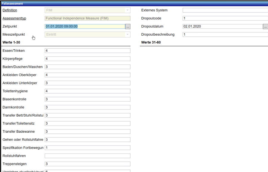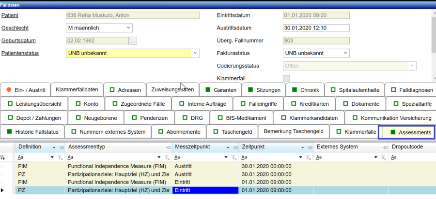 Fallassessments werde in der Regel aus dem KIS-System importiert und dem jeweiligen Fall zugeordnet.