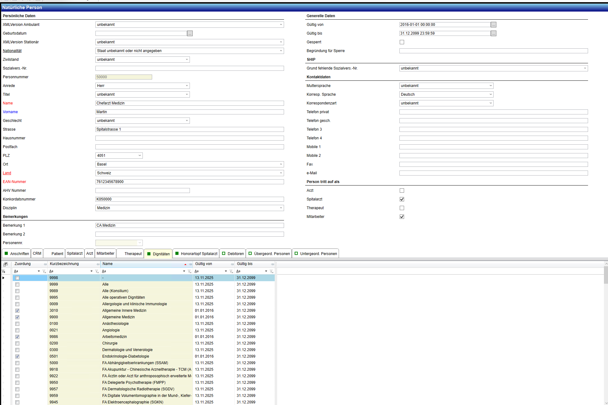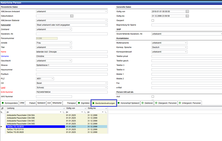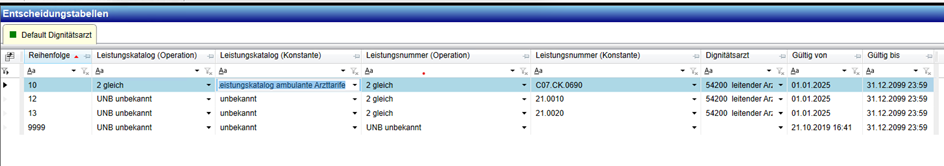 - Leistungserfassung: Erbringender Arzt / Verantwortlicher Arzt /Dignität.
