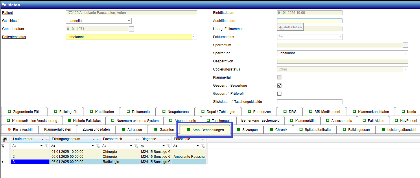- Ob es bei demselben Fall bereits fakturierte Leistungen gibt, die in die ambulante Behandlung fallen würden