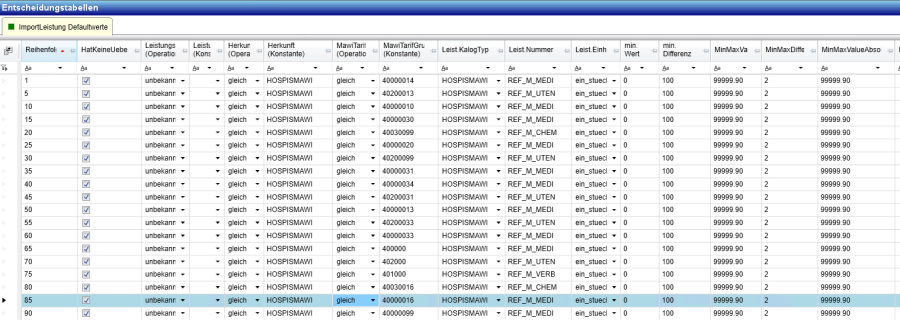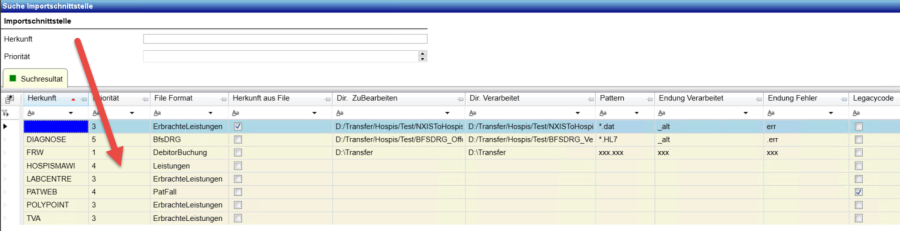 NEXUS / PAT NEXUS / PAT NG - Handbücher Handbuch MAWI Schnittstelle - Einrichtung und Pflege Current: Einrichtungen im NEXUS _ PATNG PDF Download PDF Download page Einrichtungen im NEXUS _ PATNG. Current page All pages Einrichtungen im NEXUS _ PATNG Konfiguration ServiceAnpassung der config-Files «Nexus.Pat.Import.exe.config» und «Nexus.Pat.Export.exe.config»Einrichtung ServicesImprtP1 holt LeistungenLeistungskatalogtypPro Mandant sollte ein Leistungskatalogtyp angelegt werden.Es gibt eine Speziallösung via Trigger, so dass man nur ein Katalog benötigt. Leistungskatalogtyp festlegenLegacycodeExtern auf MandantKürzel anpassenSettings NEXUS / PATNGEntscheidungstabelle PATNummernkreisReferenzleistungen anlegen ×