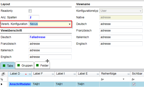 Abbildung 10.1: Darstellung des Feldes «VererbungConfigurationID» / «Vererb. Konfiguration» auf View-Ebene.