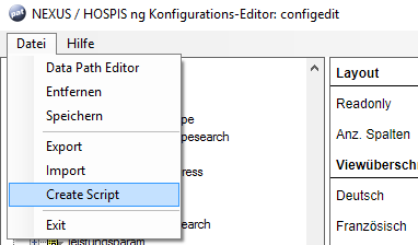 Abbildung 10.3: Aufruf der Funktion «Create Script» im Menü des Konfigurationseditors.