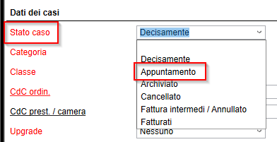 Bei einer Voranmeldung ist alles genau gleich wie bei einem sonstigen Fall, mit der Ausnahme, dass der Fallstatus nicht «Decisamente» sondern gesetzt «Appuntamento» wird.