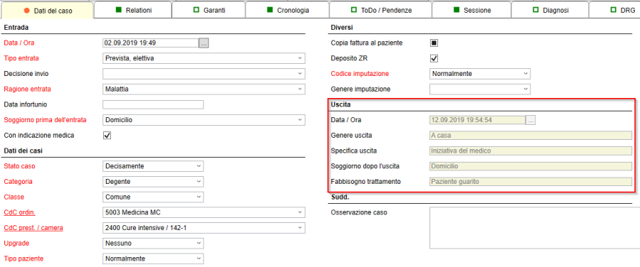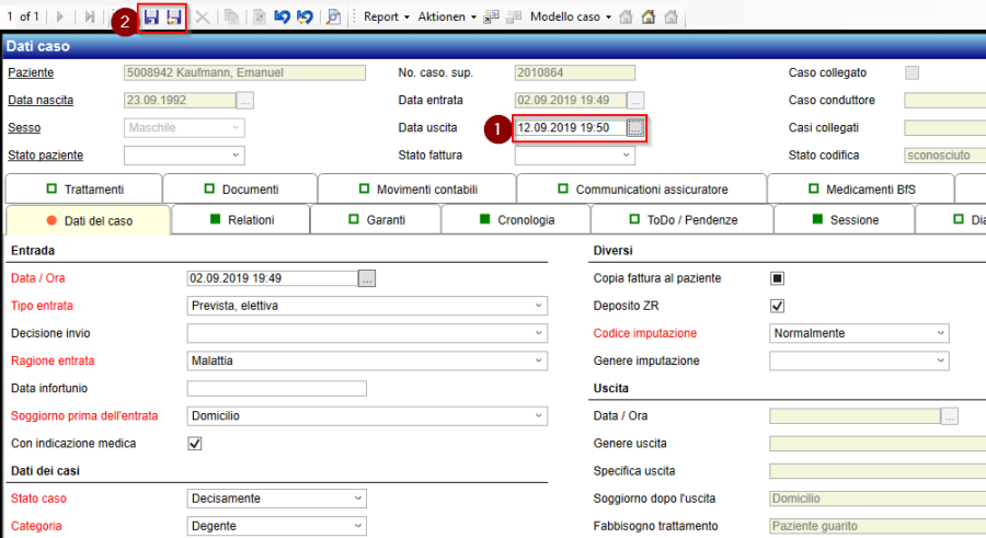 Die Austrittsdetails sind ebenfalls im Register «Falldaten» ersichtlich: