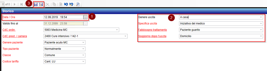 Wenn der Status «Appuntamento» gesetzt ist, muss auch bei einem stationären Fall kein Zimmer / Bett mehr angegeben werden.