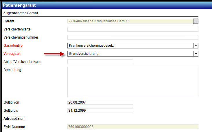 Das „Gültig bis" Datum korrekt eintragen (bis wann der Patient bei diesem Garanten versichert war).