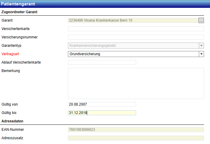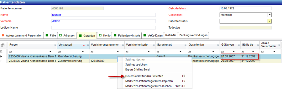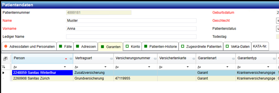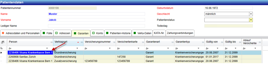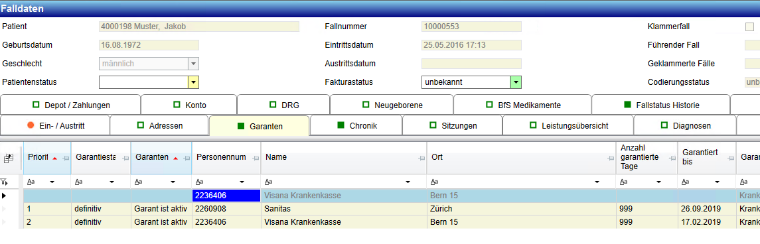 Nun ist in der Maske Patientendaten im Register Garanten ersichtlich, welcher Garant wie lange gültig ist / war.