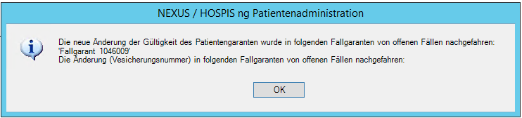 Der Wechsel wird für alle offenen Fälle mit Bestätigung übernommen. Dies bedeutet, dass bei allen angegebenen offenen Fällen der bisherige Garant automatisch ungültig gesetzt wird.