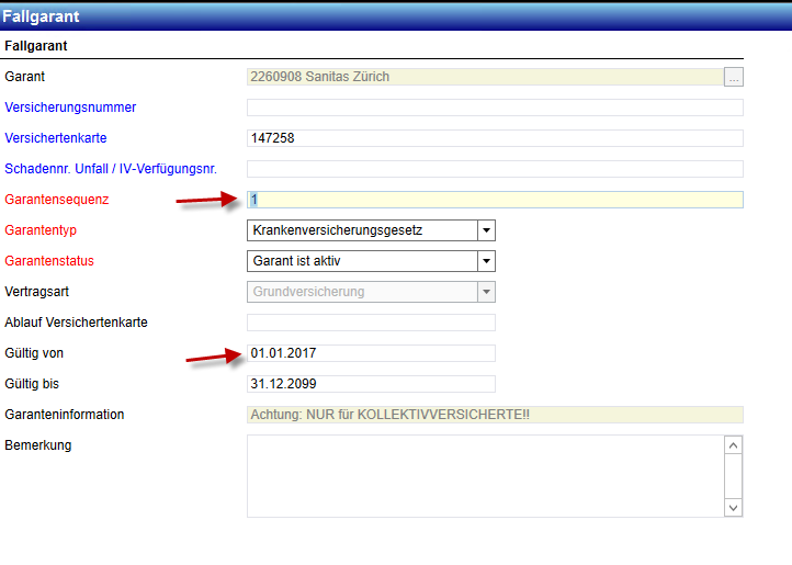 Beim Eröffnen eines neuen Falls werden nur noch die gültigen Garanten übernommen, aus diesem Grund bei einer Fallerfassung zuerst allenfalls die Garanten komplettieren und dann den Fall erfassen.