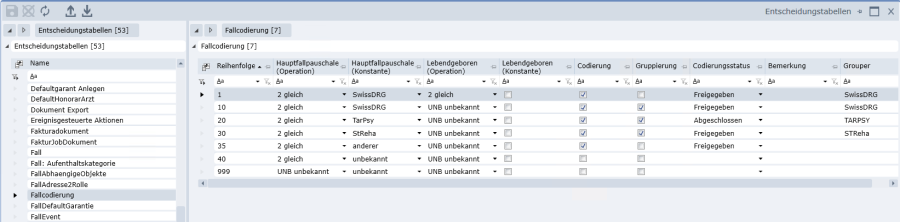 In der Entscheidungstabelle «Fallcodierung» ist hinterlegt, welche Fälle codiert bzw. gruppiert werden: