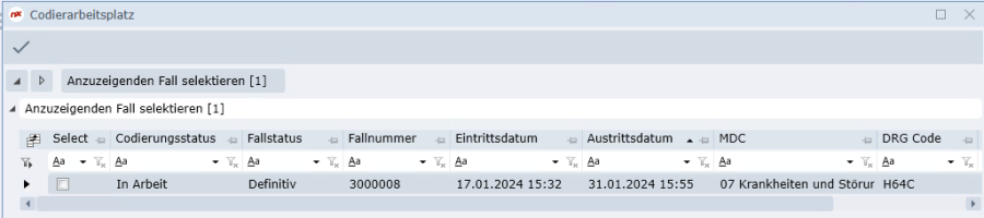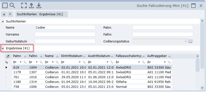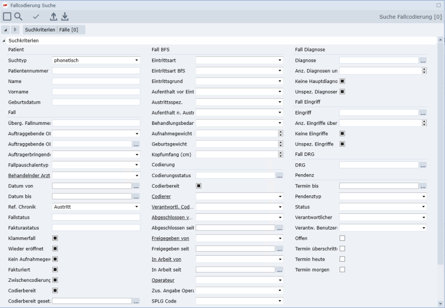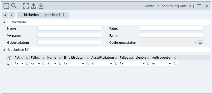 - Suchmaske für Fallcodierung anstatt Suchmaske für die Patientensuche
