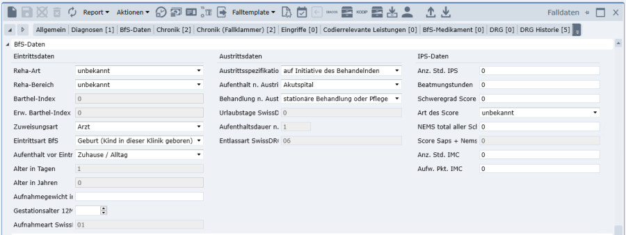 Bei TARPSY Fällen können im Reiter Psychiatrie-Daten die BfS-Daten für den Psychiatriedatensatz erfasst und mutiert werden.