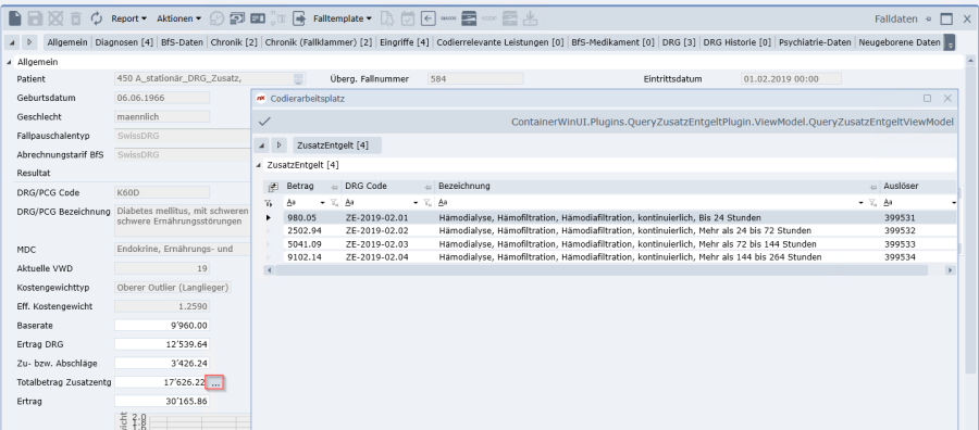 Abbildung 42: DRG/PCG/RCG mit Zusatzentgelt