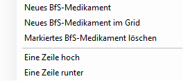 Mit dem Kontextmenü «Markiertes BfS-Medikament löschen» kann ein erfasstes BfS-Medikament wieder gelöscht werden.