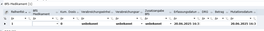 Sofern alle Daten korrekt vorhanden sind, werden dann beim Aufruf eines Falls im Codierarbeitsplatz die entsprechenden BfS-Medikamente automatisch generiert, solange der Fall einen Codierungsstatus besitzt, der dies gemäss Applikations-Einstellungen erlaubt.