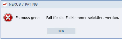 Abbildung 52: Fehlermeldung bei der Fallklammer ohne Fallselektion