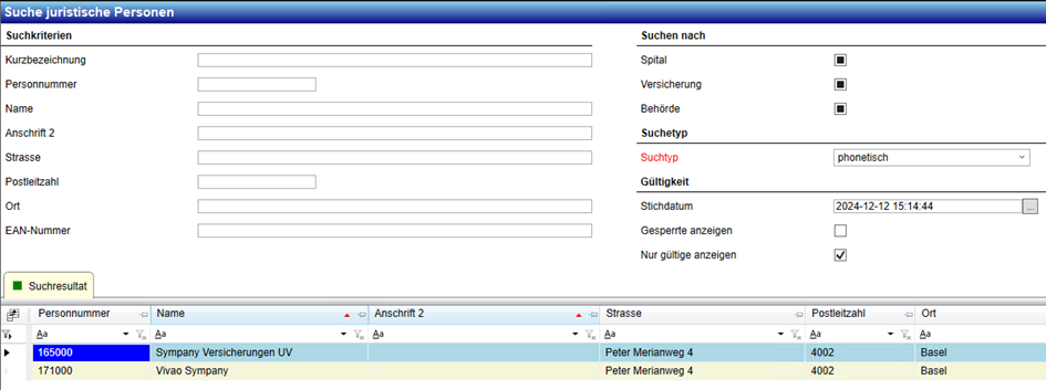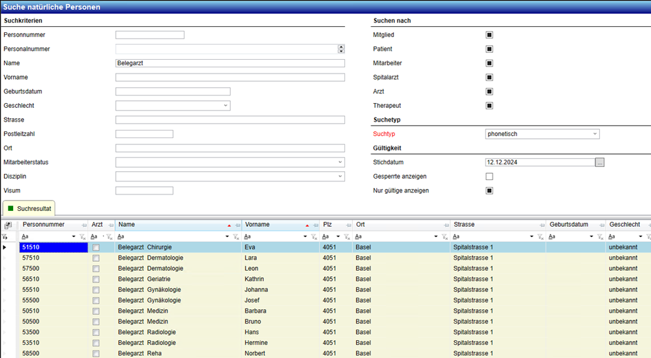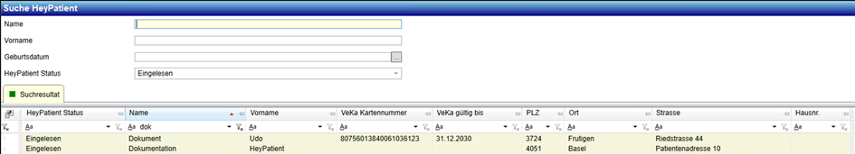 Beim Hausarzt wird man direkt in die Suche der natürlichen Person mit den übermittelten Daten geführt: