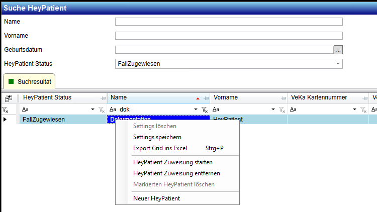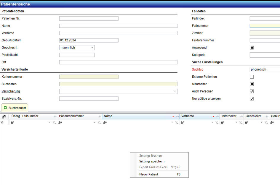Dabei wird in einer fünfstufigen Suche (analog Veka) versucht einen bestehenden Patienten im System zu finden.