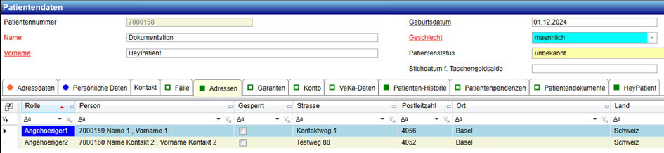 Die Angehörigendaten werden direkt übernommen, nachdem gespeichert wurde.