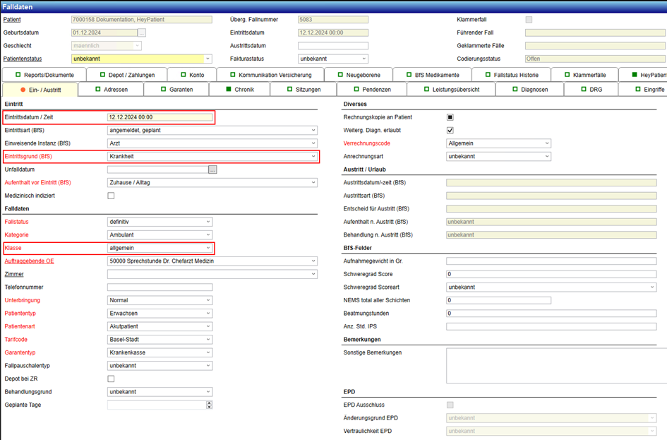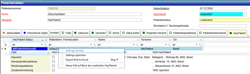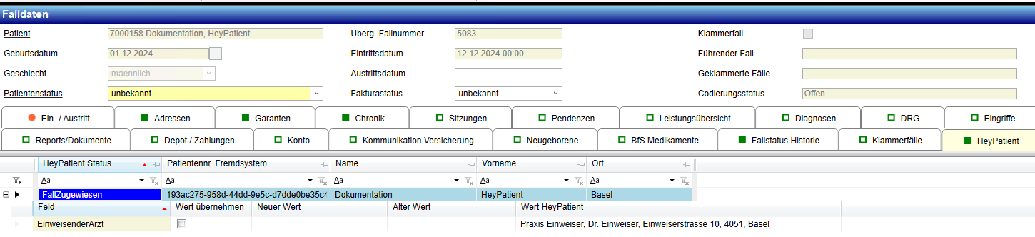 Ebenfalls kann man den einweisenden Arzt im Fall im Reiter "HeyPatient" abgleichen und den Workflow zur Erfassung starten.