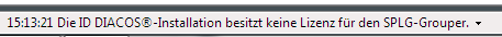 Wenn keine Lizenz vorhanden ist, wird bei der Rückkehr von ID DIACOS® nach NEXUS / PATNG in der Message-Line folgender Satz angezeigt: