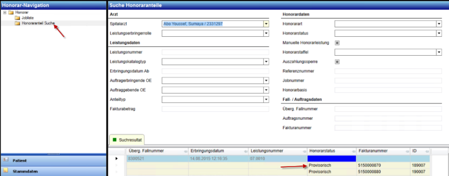 Der HonorarTopf für den Spitalarzt konnte nicht aufgelöst werden. |