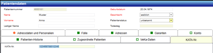 Die KATA-Nr. wird nur im Notfall verwendet. Auf dem Reiter KATA-Nr. ist nur das eine Feld KATA-Nr. zu erfassen. Die KATA-Nr. ist die Katastrophen-Nummer vom Kanton Zürich.