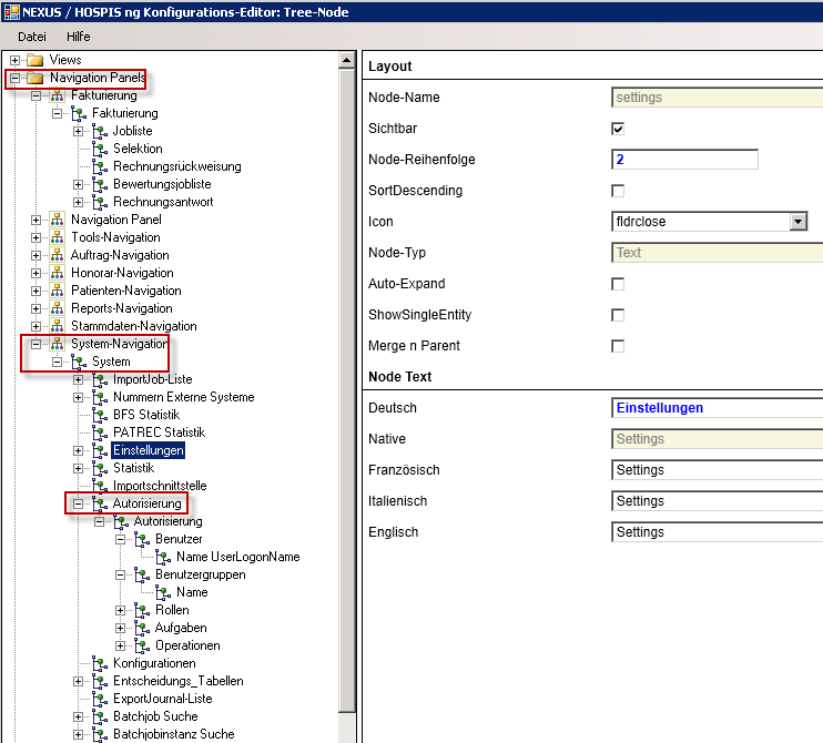 Abbildung 5.2: Übersicht über die konfigurierbare Detail-Navigation pro Reiter der Grob-Navigation. Dabei kann für die Menüpunkte der Detail-Navigation über Layout und Benennung entschieden werden (siehe Abbildung 5.3).