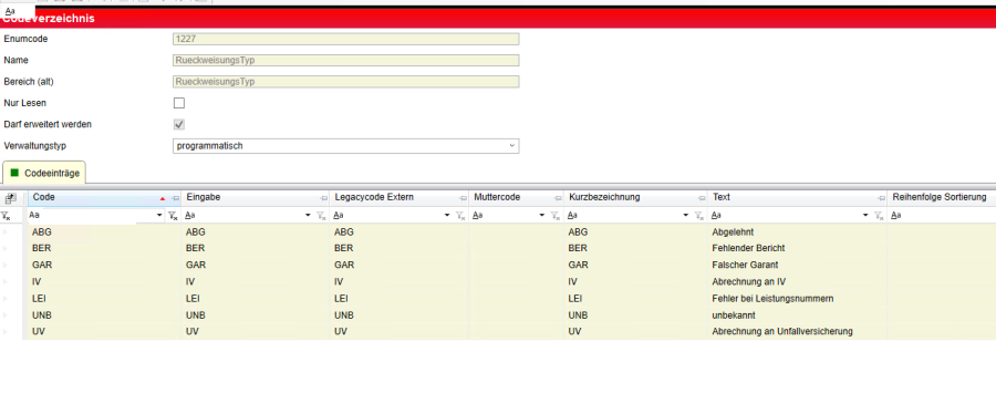 Abbildung 1 Codebereich 'Rückweisungstyp'