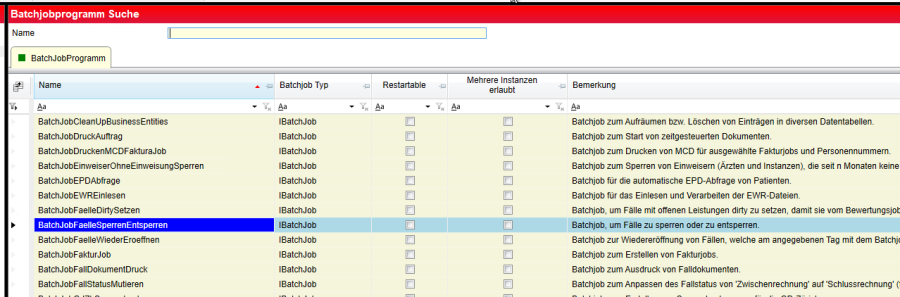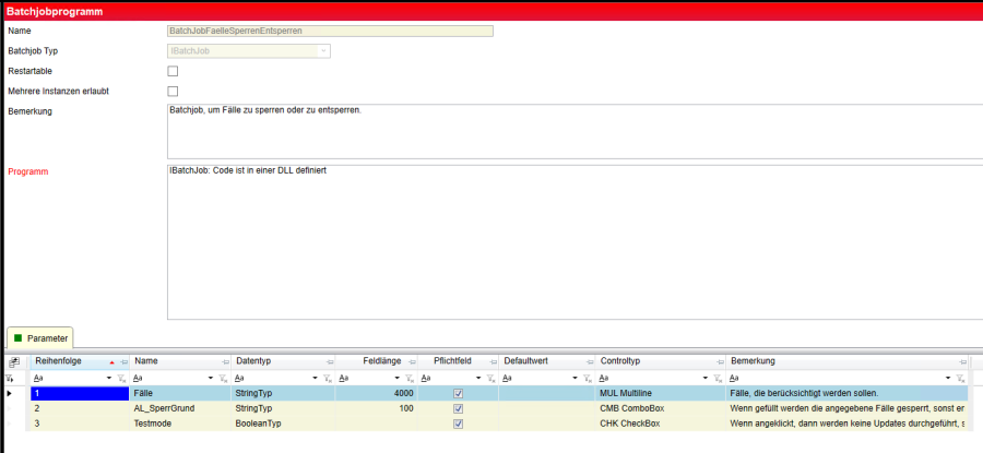 Abbildung 3 neuer Batchjob zum Sperren bzw. Entsperren von Fällen