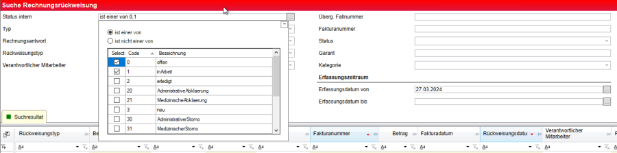 Abbildung 7 Mehrfachauswahl Suche nach 'Status intern'