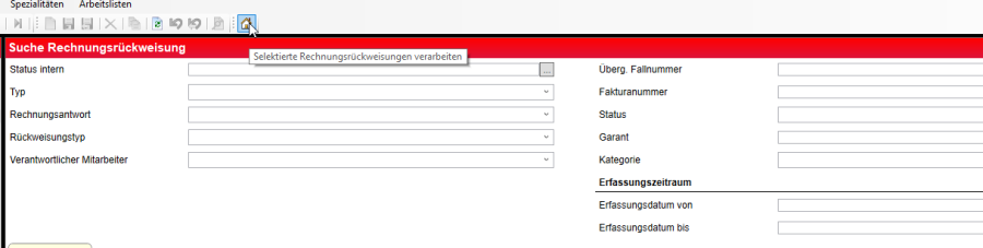 Abbildung 9 Button 'Selektierte Rechnungsrückweisungen verarbeiten'