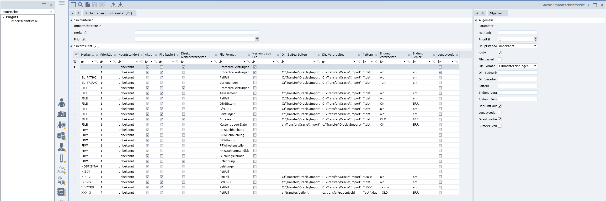 - Nexus.Pat.ImportP6: Steuert den Import gemäss Hinterlegung unter Einstellungen – Importschnittstelle, wobei die Priorität der Ziffer des Services entspricht