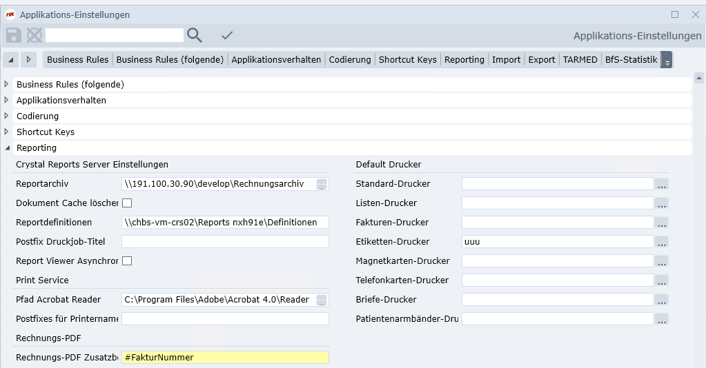 Abbildung 3: Übersicht der Applikationseinstellungen zum Reporting.