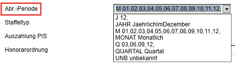 Pro Arzt kann die Abrechnungsperiode hinterlegt werden (monatlich, quartalsweise, einmal pro Jahr), die bei der Selektion geprüft wird.