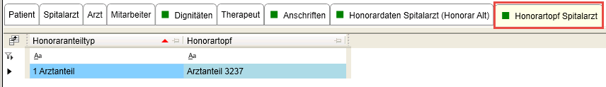 In der Honorarordnung, die dem Arzt zugewiesen werden muss, muss für jede Honorarart ein Datensatz vorhanden sein: