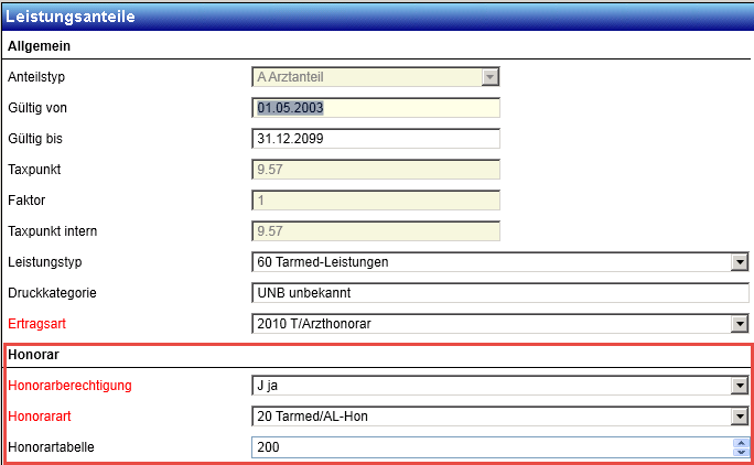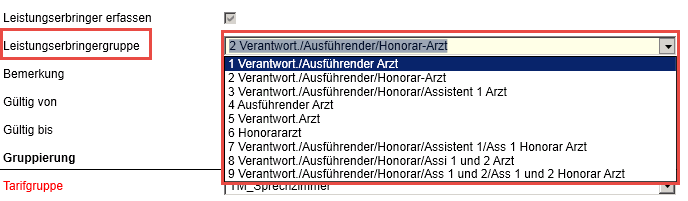 In der Leistungserfassung wird die Honorarqualifikation aus der beim Arzt hinterlegten Honorarordnung übernommen werden.