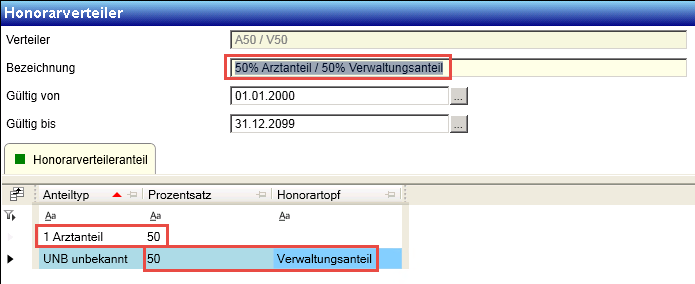 Anhand der beteiligten Ärzte kann dann gesteuert werden, welchen Anteil der Leistung dann auf die beteiligten Ärzte entfällt.