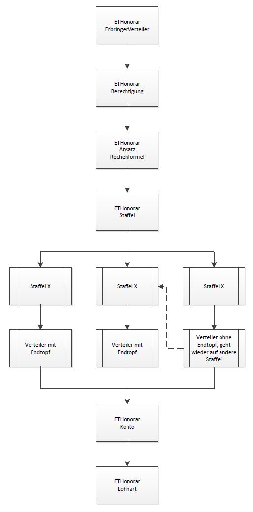 In der Honorarverarbeitung wird der Honorarverteiler nicht direkt angesteuert sondern über die Honorarstaffel ermittelt.