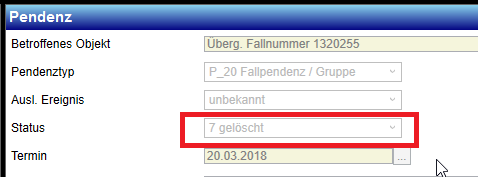 303 Wiedereröffnen einer bereits gelöschten Pendenz