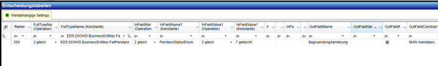 304 Pendenzen - Begründung für Änderung - Entscheidungstabelle 'Wertabhängige Settings'