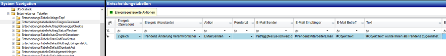 305 Pendenzen - Entscheidungstabelle 'Ereignisgesteuerte Aktionen', Mailversand bei Zuordnung bzw. Änderung des verantwortlichen Mitarbeiters in einer Pendenz