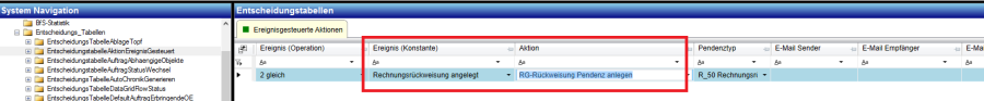 307 Pendenzen - Entscheidungstabelle 'Ereignisgesteuerte Aktionen', Anlegen einer Rechnungs-Rückweisungspendenz