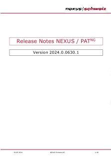 NEXUS / PAT NEXUS / PAT NG - Releaseunterlagen Current: Release - 2024.0 PDF Download PDF Download page Release - 2024.0. Current page All pages Release - 2024.0 Releasenotes Datenbank-Änderungen Testcheckliste SchnittstellendokumentationReleasepräsentation ×