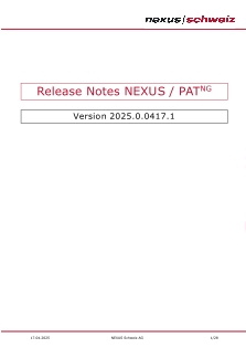 NEXUS / PAT NEXUS / PAT NG - Releaseunterlagen Current: Release - 2025.0 PDF Download PDF Download page Release - 2025.0. Current page All pages Release - 2025.0 Releasenotes Datenbank-Änderungen Testcheckliste SchnittstellendokumentationReleasepräsentation ×