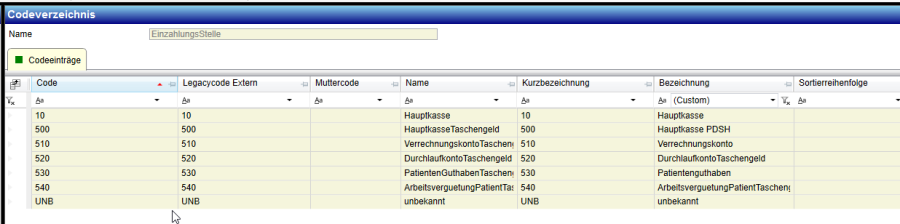 Im Codeverzeichnis ‚Einzahlungsstelle' sind die möglichen Einzahlungsstellen, sowohl für Depotzahlungen als auch für Taschengeldbewegungen hinterlegt.