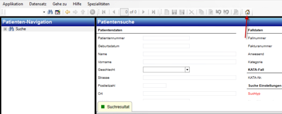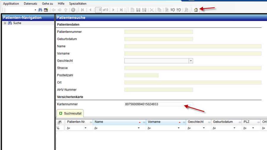 Der VeKa-Modus beziehungsweise das Einlesen oder suchen mit der VeKa-Karte beginnt immer auf dem Startbildschirm Patientensuche.