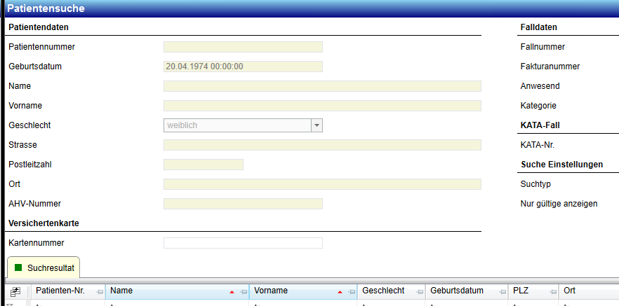Bei einem positiven Suchergebnis erscheint das Ergebnis im Grid (bereits erfasster Patient)