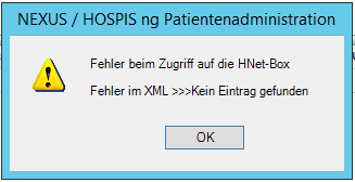 Fehler beim Zugriff auf die HNet-Box bedeutet ein technisches Problem, das bedeutet es muss eine Meldung an OIZ erfolgen.